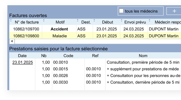 Une gestion efficace et un suivi facilité: de la saisie des prestations, à l’envoi des factures jusqu’aux statistiques.