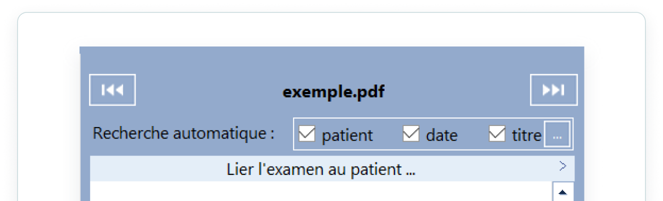 Grâce à notre moteur d’extraction d’informations les données clés sont reconnues et permettent d’attribuer le document au dossier médical du patient concerné.