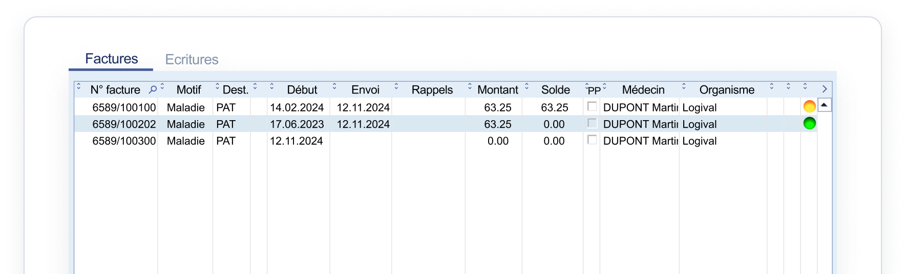 Le module de facturation vous permet de saisir rapidement des prestations de différents tarifs qui sont automatiquement mis à jour au moment opportun.